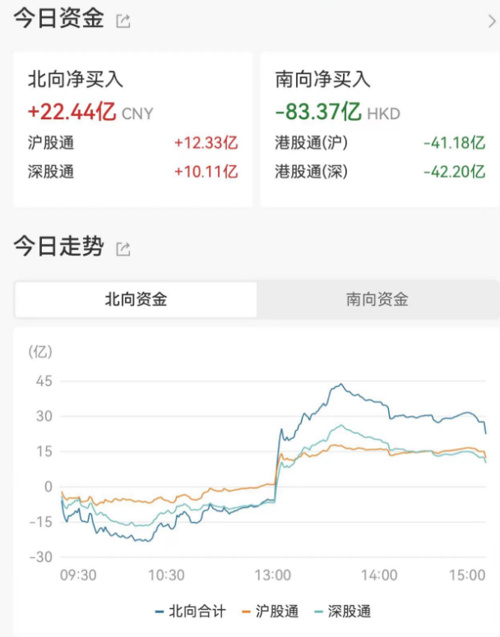北向早盘最高流出24亿,收盘后北向资金净买入逾22亿元。