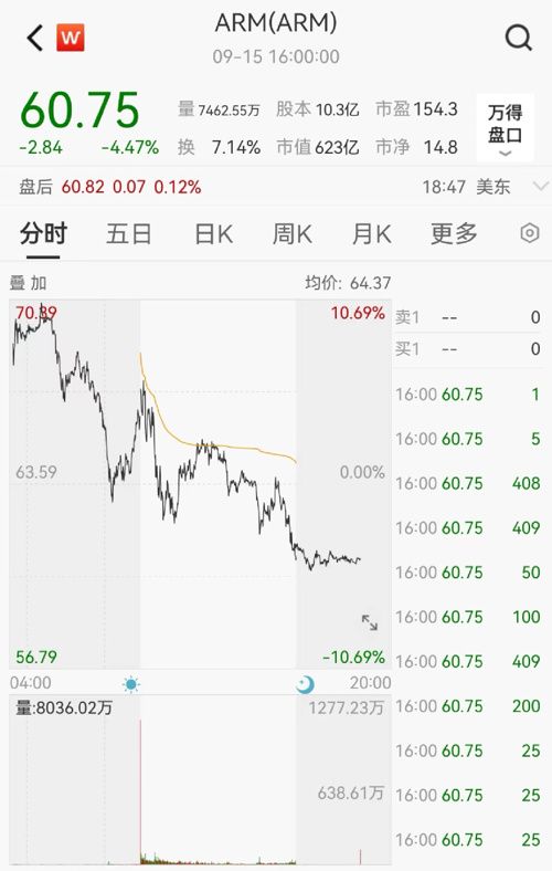 新股ARM在上市后的第二个交易日高开低走。一度大跌10.69%,全日收于60.75美元,跌4.47%。9月14日美国IPO以来,公司本周两个交易日累计上涨19.12%。