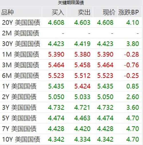 美债收益率普遍收涨