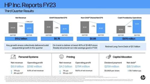 从时间轴来看,巴菲特的减持是在惠普公布2023年第三财季财报之后。