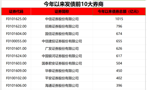 招商证券、国信证券、中信建投、中国银河四家发债均超过600亿;国泰君安、华泰证券以及平安证券也发行了超400亿以上的债券。
