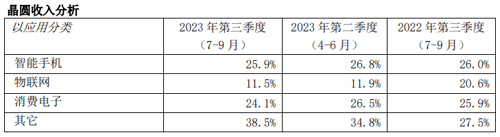 不过,在细分应用领域,智能手机的收入占比,却从二季度的26.8%,下降至三季度的25.9%。