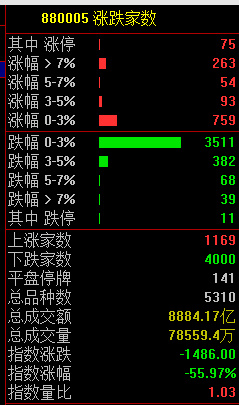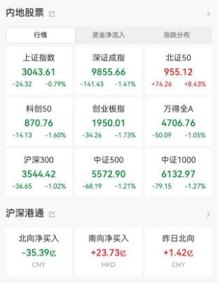 两市共1169只个股上涨,4000只个股下跌,北向资金净卖出35亿元。