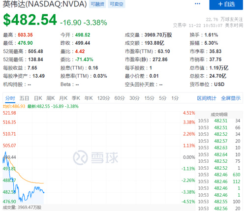 今晚美股整体上涨,但AI芯片巨头英伟达,股价却发生了大跌。