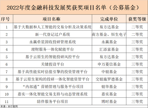 10家公募获央行“金融科技发展奖”