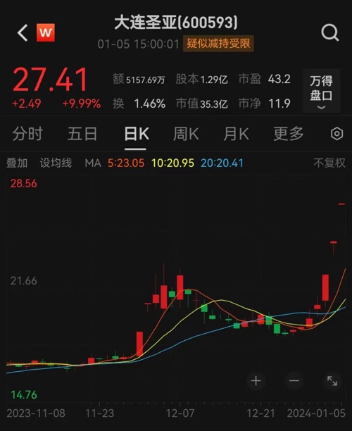 另外,近期同样股价火热的大连圣亚,股价连续3个涨停,并且在1月5日一字涨停。1月5日晚间,大连圣亚表示,公司主营业务主要为极地海洋馆景区经营、景区场馆内商业运营及动物经营,公司目前生产经营活动未发生重大变化。