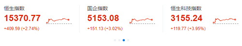 港股方面也在反弹,恒生指数涨近3%,恒生科技指数涨近4%。