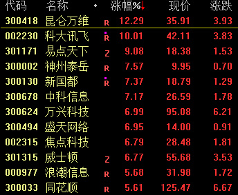 多模态AI板块午后持续拉升,昆仑万维涨超15%,科大讯飞、万兴科技、拓尔思、三六零、汤姆猫、云从科技等涨幅居前。