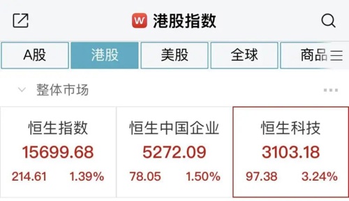 港股方面,三大指数同样走高,恒生科技指数大涨超3%。