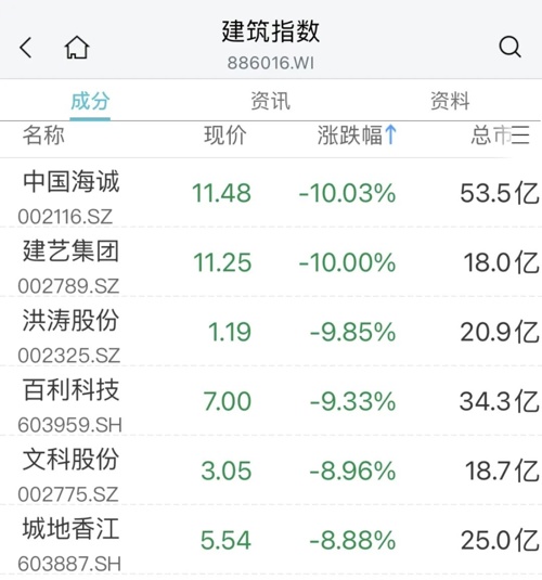 建筑、新型城镇化板块震荡走低,中国海诚、建艺集团、洪涛股份等跌停。
