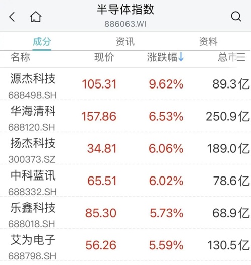 光伏、半导体概念股盘中走高,源杰科技涨超9%,华海清科、扬杰科技、中科蓝讯等跟涨。