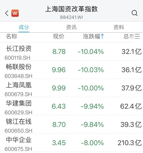 上海本地股继续调整,长江投资、畅联股份、上海凤凰、华建集团等多股跌停。