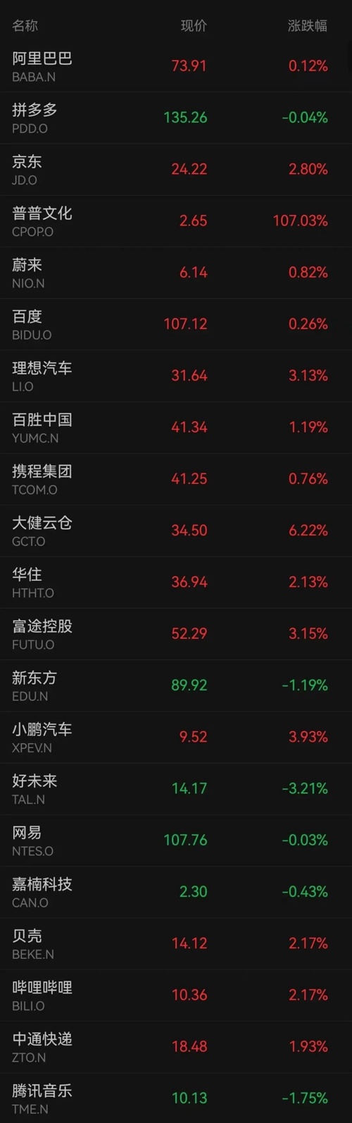中概新能源汽车股集体上涨,蔚来汽车涨0.82%,小鹏汽车涨3.93%,理想汽车涨3.13%。