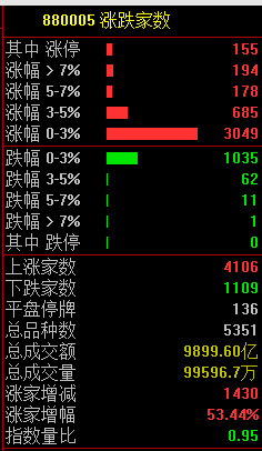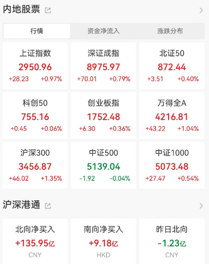 市场共4106只个股上涨,1109只个股下跌,北向资金净买入136亿元,创2023年7月28日以来新高。