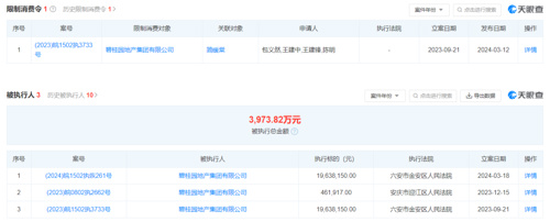 天眼查风险信息显示,碧桂园地产存在被执行人、限制消费令等信息。