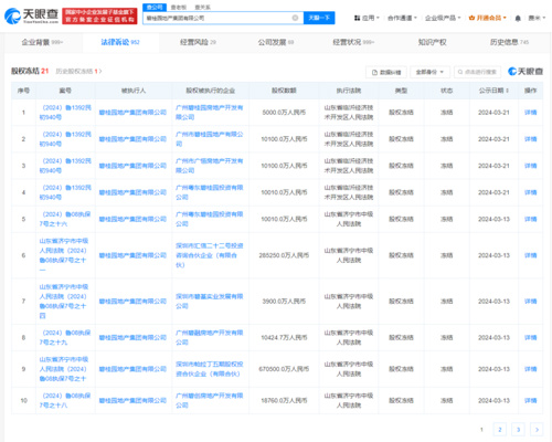 其中,帕拉丁五期的单笔冻结股权数额达67.05亿元,公示时间为3月13日,执行法院为山东省济宁市中级人民法院。