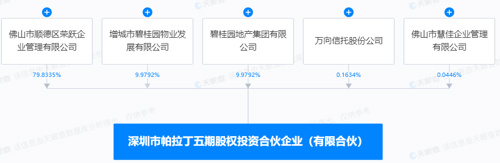 帕拉丁五期成立于2015年11月25日,出资额达671亿元,但是实缴资本未披露,经营范围包含股权投资、投资策划、投资管理、对未上市企业进行股权投资、企业管理咨询等。股东包含碧桂园地产,持股比例为9.9792%。