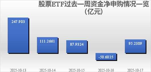 【导读】10月17日股市大跌,当日95亿元资金加仓股票ETF;上周超490亿元资金借道股票ETF进场