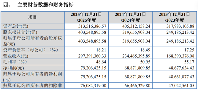2023年至2025年,恒道科技的营业收入分别为1.68亿元、2.34亿元、2.97亿元,归母净利润分别为4866.11万元、6887.18万元、7920.64万元。