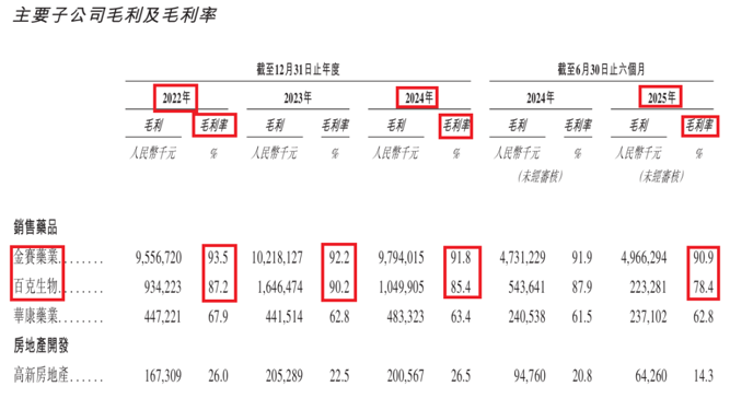 2022年至2025年上半年,长春高新的两大核心子公司金赛药业和百克生物的毛利率持续下滑,分别从93.5%跌至90.9%,从87.2%跌至78.4%。