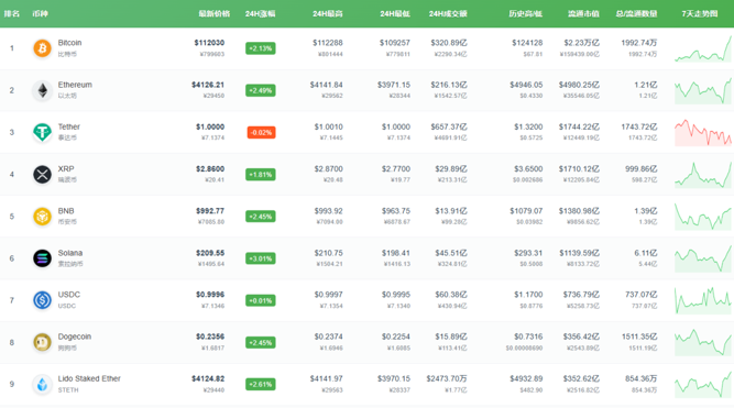 其他加密货币多数走高,币安币、狗狗币、Solana等均涨超2%。