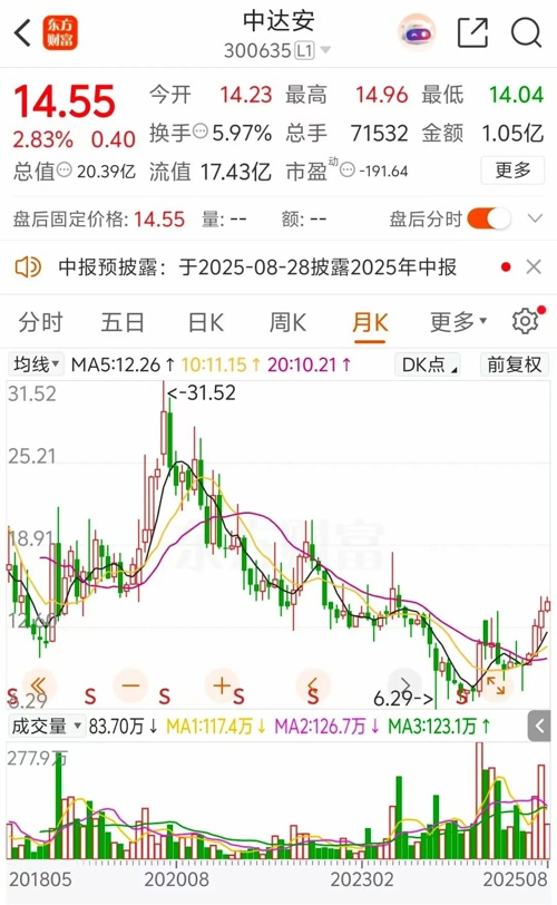 近期中达安股价有所回升,但截至8月18日收盘,其市值也仅有20.39亿元。
