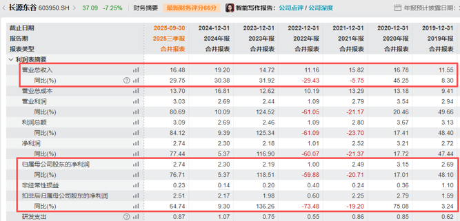 截至3月23日收盘,长源东谷报37.09元/股,总市值为120.22亿元。