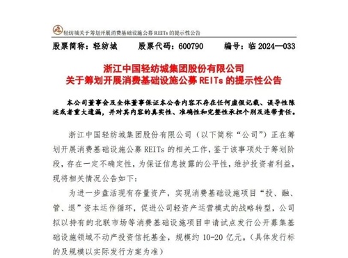 【导读】轻纺城筹划发行消费基础设施公募REITs