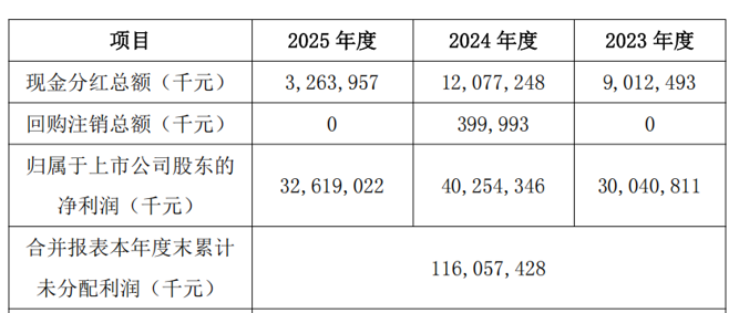 以此估算,比亚迪2025年度的现金分红总额为32.64亿元,而2023年度、2024年度的现金分红总额分别为90.12亿元、120.77亿元。