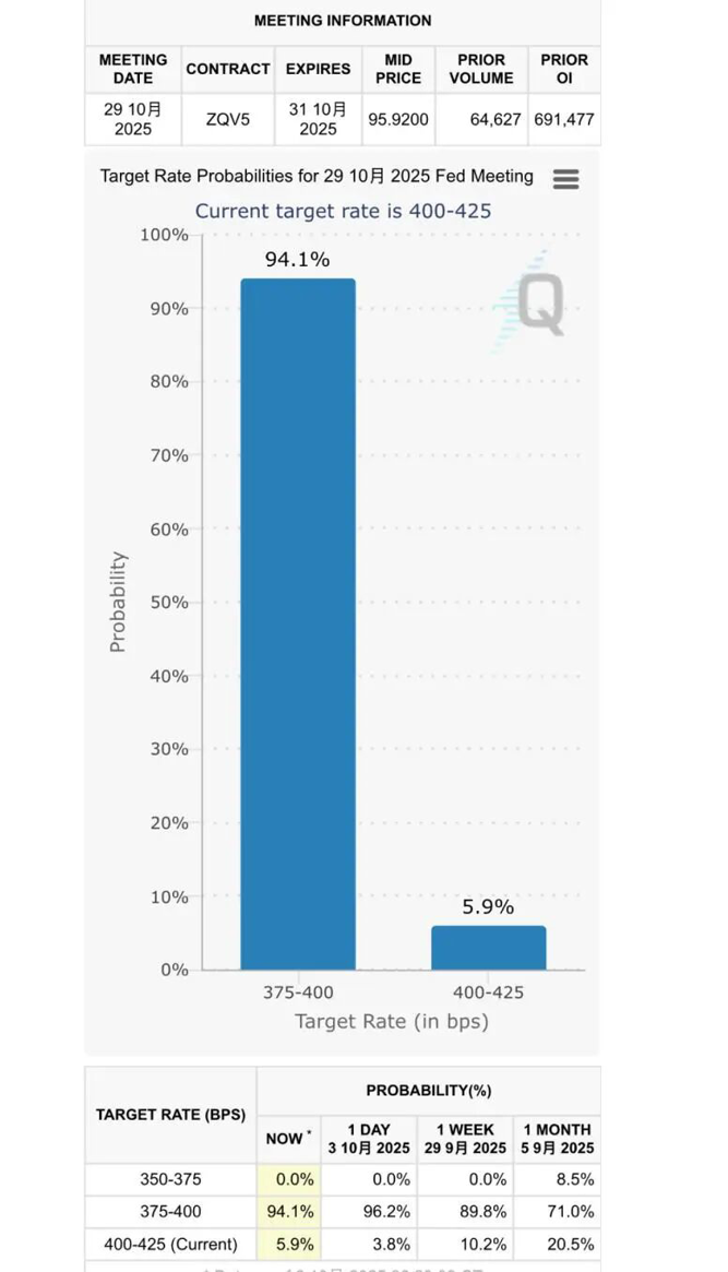 最新降息25个基点概率降至94.1%