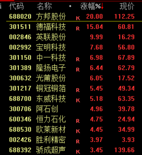 铜箔概念股拉升,方邦股份、英联股份涨停。