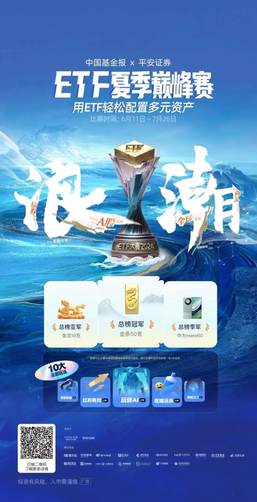 据悉,由中国基金报、平安证券携手嘉实、博时、国泰等17家基金公司共同举办的2024ETF夏季巅峰赛将于6月11日正式开赛。此次大赛持续7周,通过邀请广大投资者体验用ETF配置多元资产,力图打造“省心、省时又省钱”的“三省”金融服务体验,让投资者体验ETF的投资魅力。