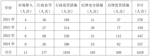数据显示,行业违法失信人次总量加速上升,2021—2024年合计1619人次,年度数量从276人次增长至557人次,涨幅101.81%。