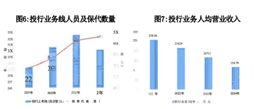 研究业务方面,2021—2024年,研究与机构销售人员扩张47.29%,从5813人增至8562人,其中,研究人员增长36.82%至6968人、机构销售团队激增121.39%至1594人,销售人员/研究员配比从1:7.1优化至1:4.4。