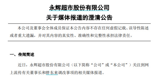 【导读】董事长跑路?背刺胖东来?永辉超市回应