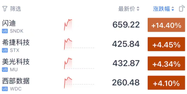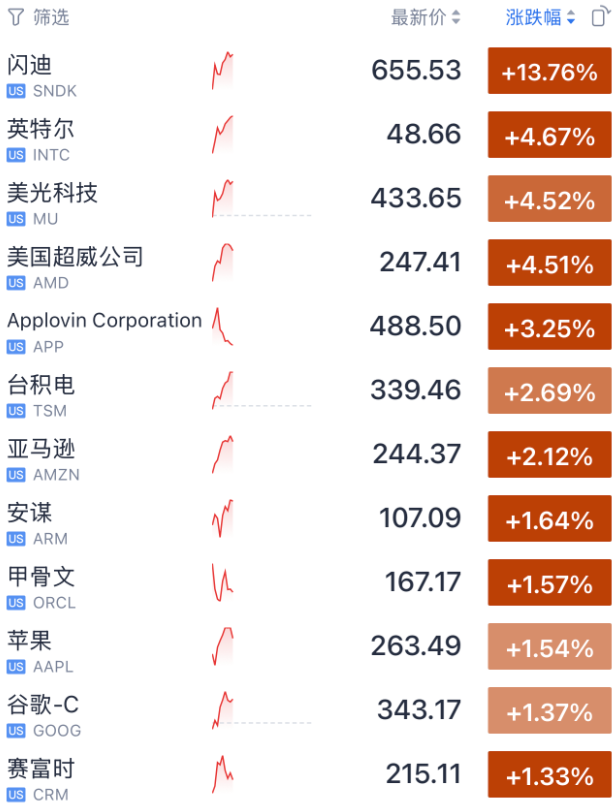 今晚的美股,存储芯片板块,涨疯了。2月2日晚间,美股摆脱了金银暴跌的影响,低开高走。道指涨约400点,纳指涨约0.4%,标普指数涨约0.4%。美股最大的亮点之一,就是存储概念板块暴涨,延续自1月以来的涨势。闪迪公司涨幅扩大至143%,希捷科技、美光科技、均西部数据上涨超过4%。 其他科技股普遍也在上涨,英特尔、AMD涨超4%,台积电、亚马逊涨超2%。甲骨文上涨,消息面上,该公司宣布计划筹集高达500亿美元,以开发额外的产能来满足客户需求。英伟达下跌,有报道称,英伟达公司内部人士表示,英伟达与OpenAI之间的交易存在不确定性。英伟达在去年9月份宣布与OpenAI达成协议,将为OpenAI构建至少10吉瓦的算力,并投资高达1000亿美元。然而,黄仁勋去年底曾向业内人士表示,这笔1000亿美元的投资不具约束力,尚未最终敲定。经济数据方面,数据显示美国制造业活动出现自2022年以来最强劲的扩张。ISM制造业指数当月读数为52.6,这一数值代表受访企业中报告“扩张”的比例。该指数较12月上升4.7点,远高于市场一致预期的48.4。在此次回到扩张区间之前,该指数连续26个月处于收缩区间(即低于50)。在经历了接近一年的萎缩之后,与需求相关的制造业活动突然回升无疑是个好消息。如果这种增长能够持续,将有助于让市场相信:在过去三年持续低迷之后,制造业正在逐步恢复。Annex Wealth Management的Brian Jacobsen表示:“制造业活动似乎正在从一个寒冷的冬天里回暖。我们之前也见过一些复苏迹象,但后来制造业又再度走弱。不过这次新订单在增长,或许这轮复苏是真的。”