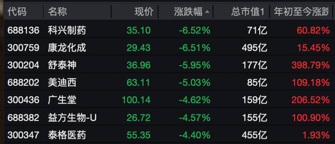 另外,创新药概念股下挫,科兴制药、康龙化成跌超6%,舒泰神、美迪西等跟跌。