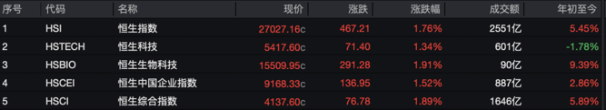 【导读】港股全面反攻,恒指大涨1.76%,再次突破27000点