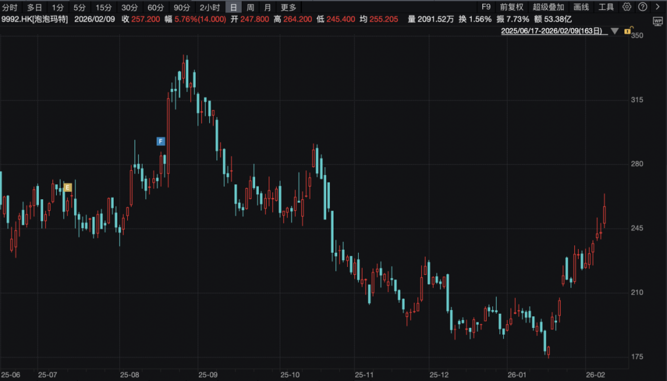 消息面上,泡泡玛特创始人王宁近日在年会上公布了2025年度核心数据。数据显示,LABUBU全年销量超1亿只、全品类全IP全年产品销量超4亿只,业务覆盖超过100个国家或地区,全球门店超700家,拥有6大供应链基地。华西证券指出,近期公司多款新品在国内和海外表现亮眼,预计公司业绩有望迎来新年开门红,看好IP运营平台长期商业价值。挂牌首日大涨