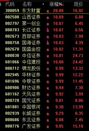 券商股集体爆发,中信证券、东方财富、山西证券、长江证券、西部证券等多股涨停。