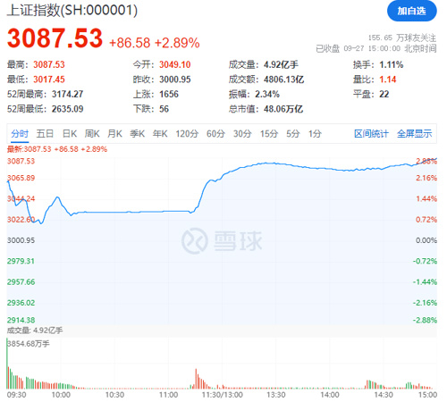 兄弟姐妹们啊,今天是不是涨到你们头晕目眩了,从2700点到3000点仅用了三天时间!创业板指数一度暴涨12%,A股创下了2008年以来最佳一周表现!绝对是见证历史的一天了。
