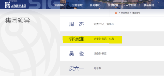 记者注意到,12月9日,上海国际集团更新“集团领导信息栏”显示,龚德雄担任党委副书记、总裁一职。