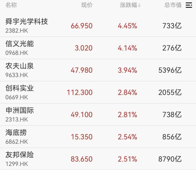 港股方面,恒生指数、恒生科技指数震荡拉升,舜宇光学科技、农夫山泉、创科实业等涨幅居前。