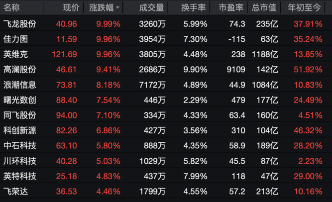 液冷服务器概念股反复走强,飞龙股份、佳力图涨停,英维克、高澜股份、浪潮信息等跟涨。