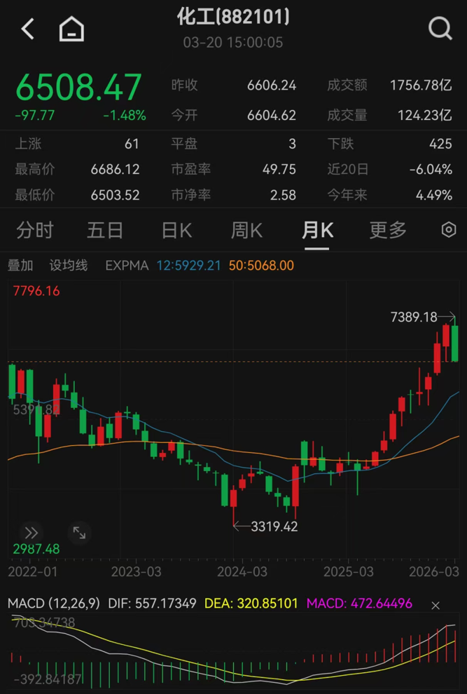 A股市场近期震荡调整,化工板块则在“金三”传统旺季与地缘扰动的双重作用下,呈现出先冲高后分化的走势。