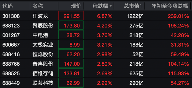 另外,聚辰股份、中电港、太极实业等涨幅居前。