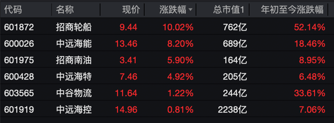 个股方面,招商轮船触及涨停,中远海能、华光源海涨超8%,招商南油、中远海特、凤凰航运跟涨。
