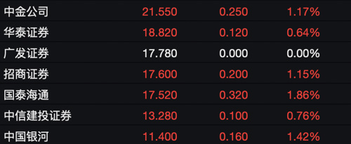 截至收盘,中金公司、招商证券、中国银河、国泰海通涨超1%,华泰证券和中信建投证券等均上涨。