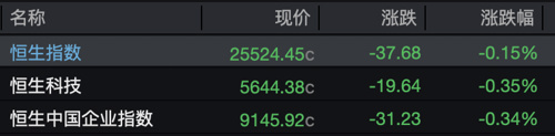 7月29日,港股三大指数午后跌幅收窄。截至收盘,恒生指数下跌0.15%,报收于25524.45点;恒生科技指数下跌0.35%;恒生国企指数下跌0.34%。