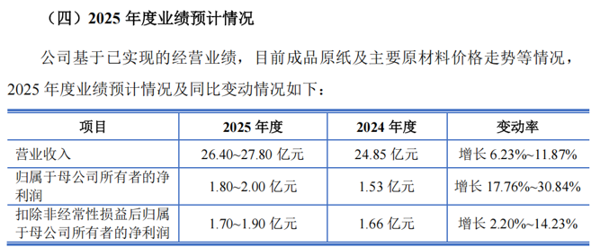 招股意向书显示,林平发展预计其2025年全年的营业收入为26.40亿元至27.80亿元,同比增长6.23%至11.87%;归母净利润为1.80亿元至2.00亿元,同比增长17.76%至30.84%。